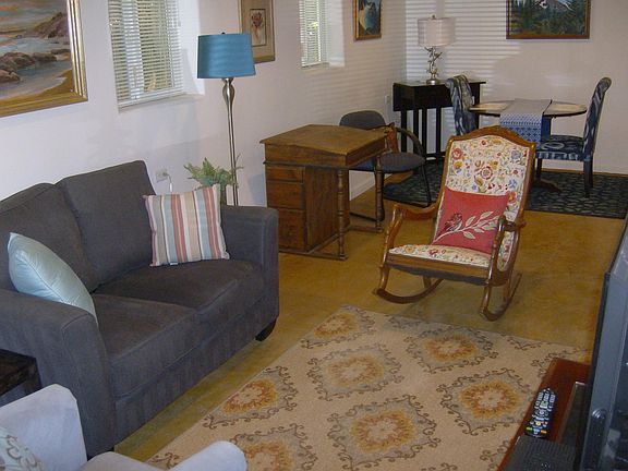 Cozy yet spacious fully furnished 1 bedroom/one bath rental, located in vibrant Monterey just a few minutes' walk from the Presidio, Middlebury Institute, and downtown old Monterey. Enjoy the full lower floor of a charming home, with private entrance, and full use of washer/dryer, storage area for bikes and more. $1,900/month, includes utilities; plenty of no time-limit on-street parking. No pets, no smoking. Must see! Available now. Includes all utilities, WiFi, TV etc