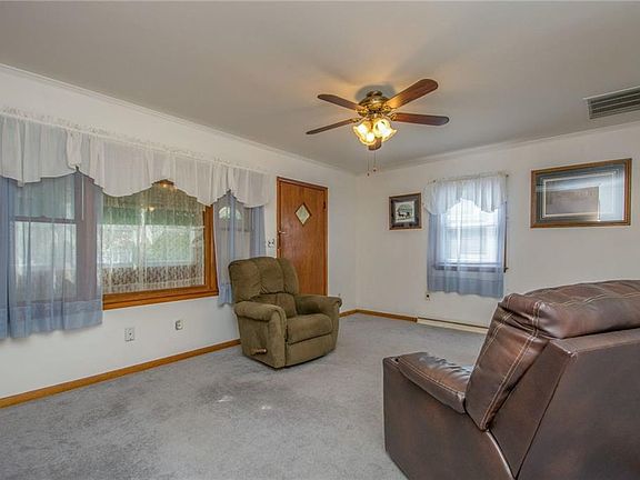 First time homebuyer alert! or,...if you are downsizing , or looking for all ONE LEVEL living space: Sweet 2 BR home with 2 car garage, Eat-in kitchen, enclosed front porch with windows on all sides. Nice yard. Laundry/mudroom right off the back door. Maintenance free vinyl siding. It is believed there are hardwood floors under all of the carpet (one of the bedrooms has visible hardwood floors). Don't wait on this one!