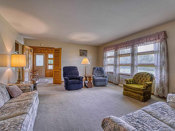 This well-maintained 3 bedroom, 1.5 bath one owner home has been meticulously cared for, boasts a detached garage and carport, has an acre of land and is located close to town and schools. The home boasts unique features throughout, it is like walking back in time. When you enter the foyer, the antique stained glass window and mid-century half wall provide a stylish and welcoming feel. The living room, carpeted and spacious, is flooded with natural light thanks to its generously sized windows. Moving on from the living room, the eat-in kitchen offers ample cabinetry and shelving, accompanied by an extensive stretch of countertop, perfect for preparing meals with ease. The sunroom, situated adjacent to the living room, is currently utilized as an office and sports wooden wall panels along with extensive windows. As a versatile area, it can cater to multiple requirements propitiously. The three bedrooms are located down the hall. The primary bedroom is spacious and has three closets. It also features long and high windows that provide both privacy and ample natural light. The two remaining bedrooms are situated across the hall, both have carpeted floors and spacious closets for storage. All three bedrooms share a full hall bathroom that boasts ample cabinetry, a tub/shower combination, and a sink with a vanity. The basement of the house is a sprawling living space. There is a rec room that offers ample sitting space and also includes a built-in bar area. The room is large and can accommodate many guests for entertainment. The basement features a 14x10 work room with shelving and a workbench, which is accessible through the rec room and laundry area. In addition, there is a half bath and two unfinished storage areas also located in the basement. This well-maintained property includes a detached garage and utility shed with abundant shelving and work space. The home sits on a full acre, providing ample outdoor living space. Enjoy the scenery by sitting on the patio or utilize the built-in planters out front! A new owner would have everything they need in this turnkey property.