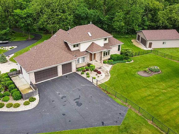 Stunning vistas on this rural estate with abundant wildflife, winding creek and treed privacy, but only 5 miles to I-90, shopping, and restaurants. Top of the line finishes, raised panel doors, 2x6 construction, granite, plus high end appliances, stone fireplace, and screened in porch overlooking the woods. Full exposure, with lower level bar, Game Room, Family Room and 4th Bedroom. The main level features a huge Laundry Room, eat-in Kitchen, Great Room, formal Dining, and Master with well appointed Bath, and Sitting Room. Upstairs has two more Bedrooms with Bath. 4 car attached, and 36x45 heated outbuilding. Many, many updates. Paradise living awaits. Zoned for horses.