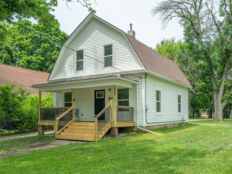 4 beds/3 baths on 1/2 ACRE in town at a great price, DM SW. Completely updated inside & out and redesigned floor plan. You're greeted with a large new covered front porch. Step in the front door to the big living room, open floor plan that flows to the dining area & new kitchen with Quartz countertops, stainless appliances, pantry, main floor laundry area and half bath. The primary bedroom with En suite bathroom completes the main floor. Upstairs; 3 more bedrooms and a beautiful full bath. New drywall, HVAC system. All new plumbing (supply & drains). Newer electric service to the house and updated lines throughout the home. New insulation in all walls and ceilings. New windows 2023. Newer siding. All new doors interior & exterior. New cabinets, bathroom vanities & tops. New flooring throughout. Newer sewer and water main was installed in 2007. Covered patio area off the kitchen. This home is perfect for entertaining, and did I mention the large, park-like yard? Almost half acre ready for you to create your play space, add your garage and garden.  Seller has applied for city Tax Abatement, 10 years, and begins February 2024.