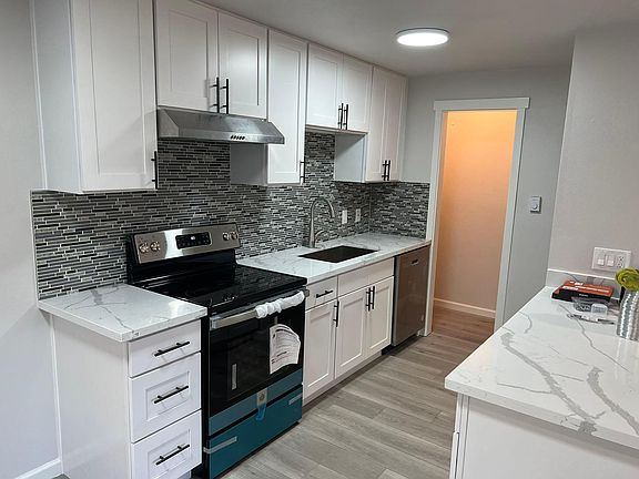 BRAND NEW RENOVATED 2-bedroom, 1.5-bathroom unit on a quiet street. This unit features all new luxury hardwood laminate flooring throughout the unit along with freshly tiled showers giving it a modern finish. Kitchen has been fully updated with new cabinetry and stainless-steel appliances. Large back yard has lots of parking, attached garage parking + storage. Easy walking to public transit. Screening Criteria: Verified income of 2.5x monthly rent, a credit score of 700 or higher, no open bankruptcies, no past landlord-tenant disputes with judgment in favor of the landlord, no evictions in the last 7 years. Renter is responsible for electric. Additional utility fee of $100 per adult, per mo covers water, sewer, garbage and landscaping. Last month's rent due at signing. No smoking allowed.
