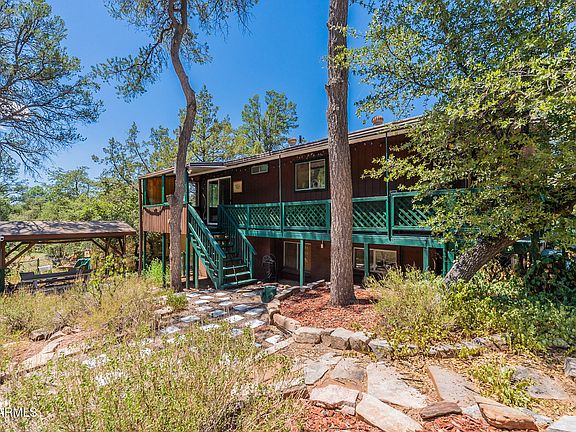 This is your chance to own a piece of paradise in Payson! Primary home or second home retreat, this beautiful home has been been recently upgraded with granite counters, new carpet and paint, a split AC, new water heater, new stainless appliances, and new reverse osmosis. Flexible floorplan with two living spaces, one on each level which have their own entry and own fireplace as well. Primary bedroom has a separate exit to the backyard and a covered balcony. Wraparound balcony provides views from both the front and the back of the home. Large lush backyard w/ a Ramada perfect for sitting outside and enjoying the peace and quiet or barbecuing and having dinner in the pines. Backyard features a storage shed, pond, waterfall. One car garage & plenty of room for parking additional vehicles. Conveniently located in the heart of Payson.This home has endless possibilities. Make the second level a man cave, teen space or separate rental! Make this home your life on Easy Street!