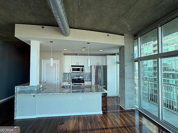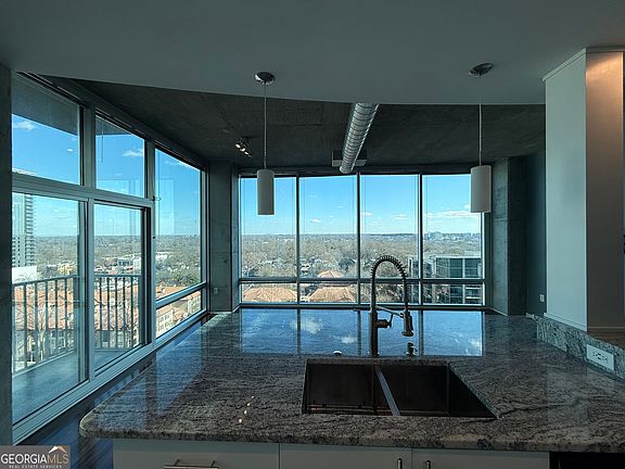 Enjoy the spectacular unobstructed views from this corner unit with floor to ceiling windows; located in the heart of Midtown. This 12th floor Metropolis condo gives you amazing views from all rooms plus an unrestricted view to Stone Mountain, the balcony overlooks the pool and common area. Stainless steel appliances are included in the unit as it is ready for easy move-in. The updated interior has custom touches to maximize the layout of this open unit - modern light fixtures, granite waterfall countertops, and hardwood floors throughout the entire unit. The owner's suite features a huge custom walk-in closet and ensuite bathroom with a remodeled shower, built in desk. Community amenities include the gym, pool, multiple grilling decks, 24 hour concierge, and clubhouse! Short walk to Piedmont Park, Marta, restaurants, shopping, grocery stores, Fox Theatre and Woodruff Arts Center. Washer/dryer in unit and one parking space included! Available Jan 2025. Minimum 1 year lease. Tenant application guidelines: Income = 3x rental rate; 680 credit minimum; credit, employment and criminal background checks performed. Application fee is $75 per adult; building move in fee is $300; building move out is $200. Please schedule all showings through Copyright Georgia MLS. All rights reserved. Information is deemed reliable but not guaranteed.