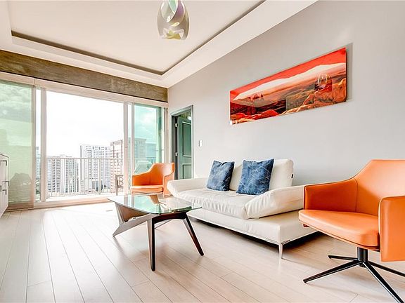 Enjoy a premium residential living experience at Metropolis, a signature contemporary architectural destination location in the heart of Atlanta’s vibrant Midtown neighborhood! This West facing true two-bedroom plan (no partial walls and floor to ceiling windows in both bedrooms) offers both an open kitchen, dining and living space plus two generous sized bedrooms, both having the feel of Primary Suites. There is an oversized balcony space that runs the entire length of the residence providing a panoramic view of the emerging Midtown skyline and Western sunsets. The residence has been completely renovated and includes numerous designer accents and lighting components. There are wide plank pristine bamboo hardwoods throughout the living areas and both bedroom spaces. Custom Cabinetry from The Millwork Solution is featured the kitchen, living room (wall entertainment center), both bathrooms and closets. The kitchen has a Premium Samsung stainless steel appliance suite (including induction oven). A large waterfall edge center island with center undermount sink can accommodate seating for four. There is also a dining space just off the main entry area. There is a laundry closet with full sized stacked Samsung washer and dryer located off the kitchen space. Both completely renovated bathrooms have immaculate granite tile and custom vanities. The Primary bathroom features a spacious seamless glass walk in shower with dual rain-head fixtures and shower wand. There are two generous sized closet spaces in each bedroom with custom built-ins. This home comes with two covered side by side covered parking spaces in the secured garage below the residential floors where you directly access your floor via the elevator (by pre-programmed fob which takes you to your floor). The Metropolis is well known for its Premium Resort quality amenity package which includes 24/7 Concierge Services and Security, onsite management and maintenance staff, state of the art Fitness Center, Club room, Olympic sized saltwater pool, business center and multiple gas grilling stations. Numerous restaurant and entertainment options, the Midtown MARTA station, Piedmont Park, The Fox Theatre, Woodruff Arts Center and The High Museum are just steps from your door. Publix and Whole Foods are also just a short walk away.