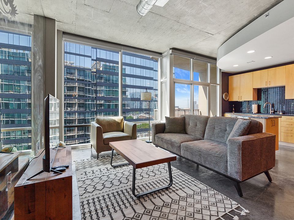 Live towering over the heart of Midtown, where style and convenience come together. This gorgeous 16th-floor unit has an open floor plan that showcases dramatic floor-to-ceiling windows that fill the space with natural light, highlighting sleek concrete floors and offering unbeatable skyline views. The kitchen and living space open to a private patio, to sit with an aperitif in hand. Enjoy thoughtful touches like electric shades, a spacious walk-in closet, and an included washer and dryer. Metropolis residents enjoy a 24/7 concierge, resort-style pool deck, fitness center, designated parking, and community spaces to make new friends. Step outside your door and you're moments from Piedmont Park, the BeltLine, Whole Foods, Publix, MARTA, and Midtown's best restaurants, coffee shops, and nightlife. With top attractions like the Fox Theatre and High Museum just blocks away, this condo offers the ultimate in city living. *Option of fully furnished 1 asssigned garage parking spot. Tenants pay for all utilities. No pets. No smoking. Available fully furnished or vacant.