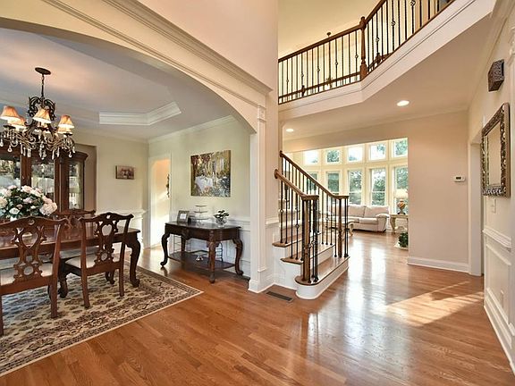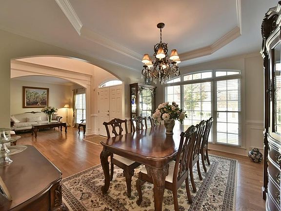 - Interior: 10 ft+ Ceil Main, 2-Story Foyer, Entrance Foyer, Trey Ceilings, Bookcases, 9 ft+ Ceil Upper, Disp Attic Stairs