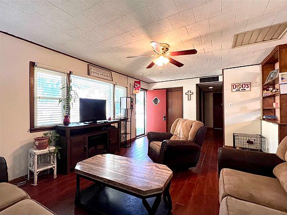 Great neighborhood!! This 3-bedroom, 1 bath home sits on a large lot. This home would make a great first time home. The kitchen cabinets have recently been painted, has newer replacement windows, a 2-car carport attached to the home, and alley access. There flooring in the living room, kitchen, hallway and one bedroom was replaced with wood look ceramic tile and HVAC system is newer. The larger backyard has plenty of space to play and has a storm shelter just out the backdoor for inclement weather.