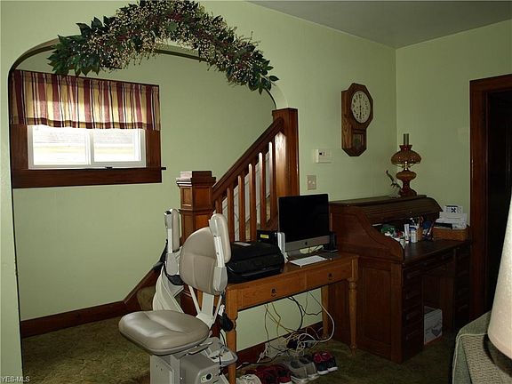 Nice quiet neighborhood is waiting to welcome you home. This 2 story home sits on a double lot with a 2 car garage and storage shed. Features a large functional eat-in kitchen with new flooring, dining room with built-ins and living room. Currently is handicap accessible with a chair lift to the second floor with 3 bedrooms. Bathroom flooring is new this year. Newer windows, water softener and A/CCity Water available at street.