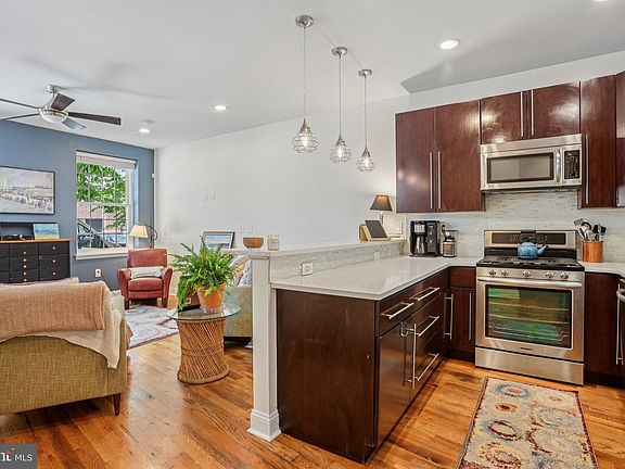 Welcome to 923 S 3rd Street—a hidden gem at the entrance to one of Queen Village’s most picturesque blocks. With its front door tucked along the quiet charm of Montrose Street, this beautifully updated home blends timeless character with modern design, just minutes from some of the city's top attractions. A welcoming tiled foyer opens into a spacious open-concept main level. Natural hardwood floors lead through the bright and stylish kitchen, featuring quartz countertops, stainless steel appliances, an imported glass tile backsplash, breakfast bar, and abundant cabinetry. The open dining and living areas enjoy high ceilings, layered lighting, and oversized energy-efficient windows that bring in great natural light. Out back, a private and fully enclosed patio offers a tranquil outdoor retreat. The second floor includes two well-sized bedrooms with ample closet space and large windows, as well as a full bath in the hall. The entire third level is dedicated to a spacious Primary Suite- a true sanctuary with dual exposures- complete with custom built-ins, two closets, and a full ensuite bath. The finished lower level adds valuable flexible living space—perfect for a media room, home gym, office, or guest area. A tucked-away laundry nook and fully waterproofed foundation, along with a whole-house surge protector, offer both function and peace of mind. Located in the highly desirable Queen Village area, this home offers convenience to parks, Penn’s Landing, museums, boutiques, cafés, and the nearby Mario Lanza Dog Park. 923 S 3rd Street offers the perfect balance of historic charm, contemporary upgrades, and an unbeatable location—ready for you to enjoy.