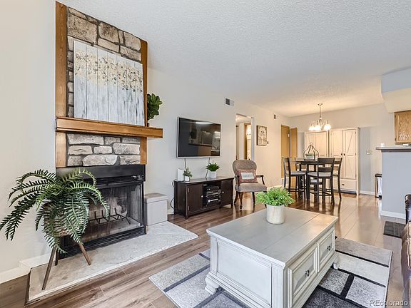 Lovely one bedroom condo within the popular Foxdale Condominium Complex. Updates include newer engineered wood floors throughout, new paint, and stainless steel kitchen appliances. Fully equipped kitchen with pantry and designated dining room that flows nicely into the spacious living room with a cozy wood burning fireplace. Access the private outdoor patio through the glass sliding doors that allow beautiful natural light to flood the indoor space. Large bedroom with walk in closet and full bathroom with linen closet. Full size laundry room with newer washer & dryer included. Condo comes with an assigned parking space and plenty of additional open parking. The complex has a nice outdoor pool area, tennis courts, and a club house that can be rented for special occasions. Located right next to Buckley Space Force Station with easy access to Denver International Airport, Cherry Creek state park, highways, shopping, restaurants and several parks. Amazing value…come check it out!