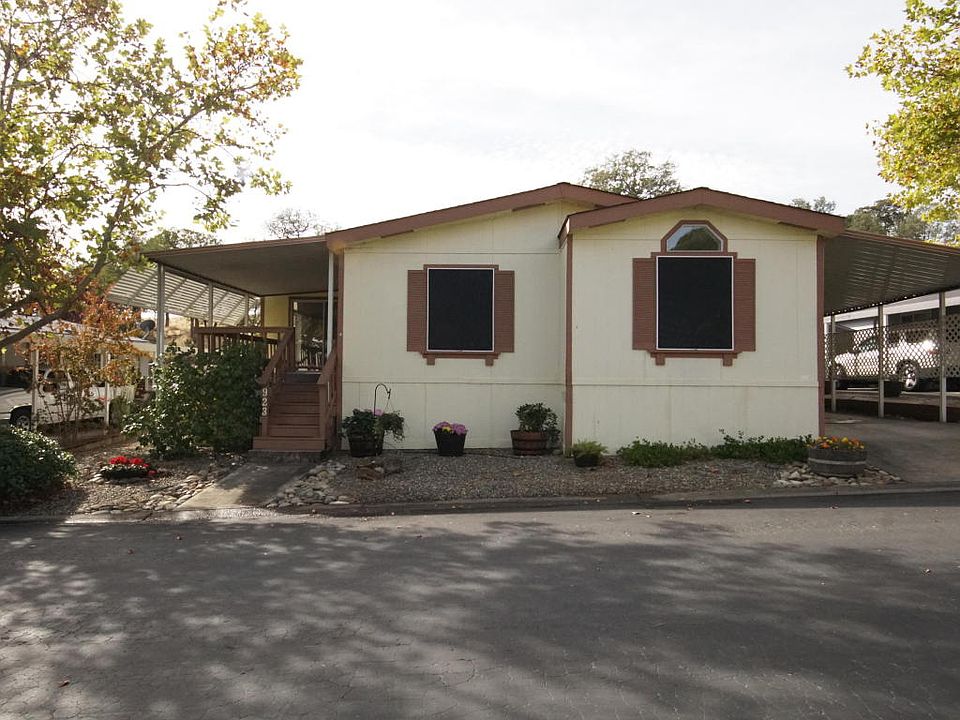 Mobile in lovely senior park ready for new owners! This home is open split floor plan, freshly painted inside and out. Great bright dining room, great front porch, and the backyard is nice and serene and backs to an open field. This park is quaint with a clubhouse and pool.