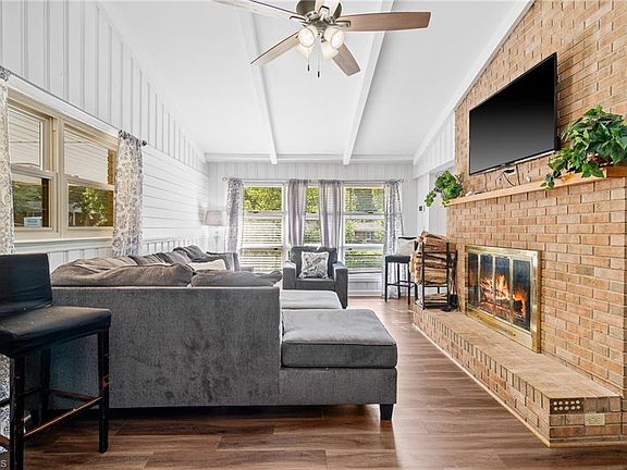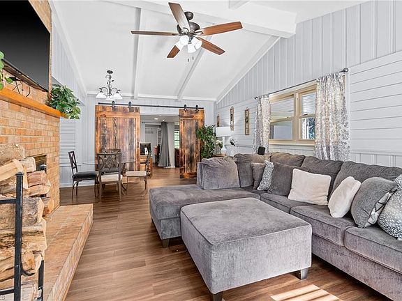 Hello mid-century vibe home. Don't let the look fool you, it appears small but it's almost 2000 sq ft. 3 bedrooms, 2 ba, 2 living spaces (one being used for a 4th bdrm) and an oversized rec room, the possibilities are endless. Living room boasts post & beam ceiling, wood burning fireplace & loads of natural light. New flooring throughout most of home. Granite added in kitchen & hall bath. New paint in several rooms including some shiplap added. Kitchen has super cool vintage original oven, island w/ storage & dishwasher. Custom built barn doors leading into rec room. Large laundry room with cabinets & shelving, you can access back yard as well. Attached carport w/ entrance to rec room. You will love the circle drive, provides plenty of parking. Super convenient area. Roof is 2020, HVAC 2018-2019 and roof for rec room 2017.