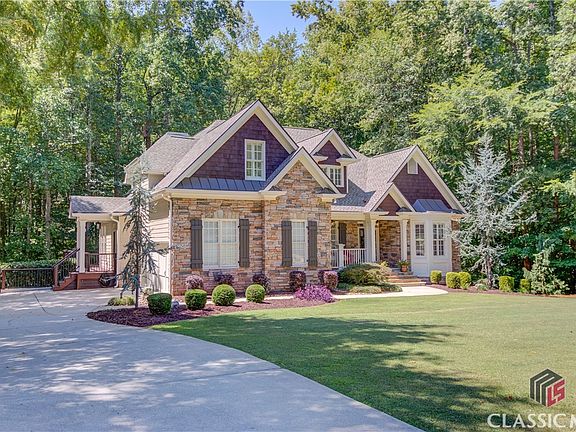 Experience the ultimate in luxury living with this stunning Craftsman-style home, where every detail is designed for comfort and elegance. Why go on vacation when you can enjoy rest and relaxation right at home? This exquisite property is meticulously maintained, loaded with upgrades, and offers ample space for entertainment and leisure activities. The owner's suite on the main level exudes sophistication, featuring a tray ceiling and a triple window offering a serene view of the pool and surrounding forest. The spacious owner's suite bath features a tray ceiling, oversized double vanity, separate shower and whirlpool with direct access to the owner's suite closet complete with custom built-in shelving. The main level is further enhanced by new hardwood floors and a two-story grand room boasting a floor-to-ceiling stacked stone fireplace, vaulted ceilings, and exposed wood beams. Home office conveniently located on the front of the home features a dramatic vaulted ceiling. Enjoy your oversized banquet-sized dining room for family dinners and entertaining. The gourmet kitchen, with its abundant cabinetry, oversized pantry, and spacious island, opens to a cozy keeping room with another stacked stone fireplace. The breakfast area offers access to step outside to the expansive new Trex deck, where you can savor the tranquility of your private, wooded backyard. Upstairs, the home features a generous guest or teen suite with an oversized ensuite bathroom and walk-in closet, along with two additional large bedrooms that share a bathroom with a double vanity. The custom-finished terrace level is a true showstopper, offering built-in cabinets, a billiard room, a media or family room, an additional room/bonus room is being used as a guest bedroom, a full bathroom, and a large studio currently used as a home office with brand new built-in cabinets. The unfinished storage area offers potential for expansion, including the possibility of creating additional finished living space. A separate lower entrance on the driveway side leads to the extended paver terrace in the backyard and two entryways for basement access, adding even more convenience to this exceptional property. Discover your own private retreat in the fenced-in backyard surrounded by woods and a creek. The salt-water pool, stone hot tub, waterfall, and cozy fire pit, create the perfect setting for relaxation and entertainment. Get the best of both worlds with this 1.07 acre property located in prestigious Chateau Forest, one of Barrow's exclusive communities with convenient access to I-85, Chateau Elan, shopping and restaurants. Your dream home awaits-where every day feels like a vacation in the comfort of your own home. This is not just a home, it's a lifestyle meticulously designed for hosting family and friends, creating lifetime of memories.