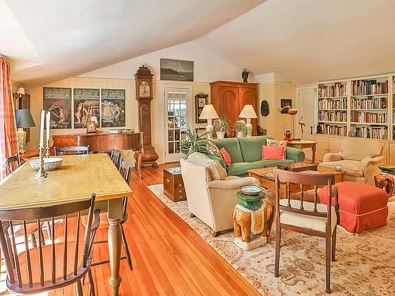 Charming waterfront country cottage. "Riversong" is beautifully sited on 2 tranquil acres on the Aspetuck river. Wrap-around deck & flagstone patio overlook sprawling lawns to river's edge. Large LR w/CC, vintage wood floors, huge picture window & fieldstone FP. Sunny kitchen w/ unique eat-in turret room. Walk to Assoc w/ tennis, swimming, beach & boating The quintessential country retreat.