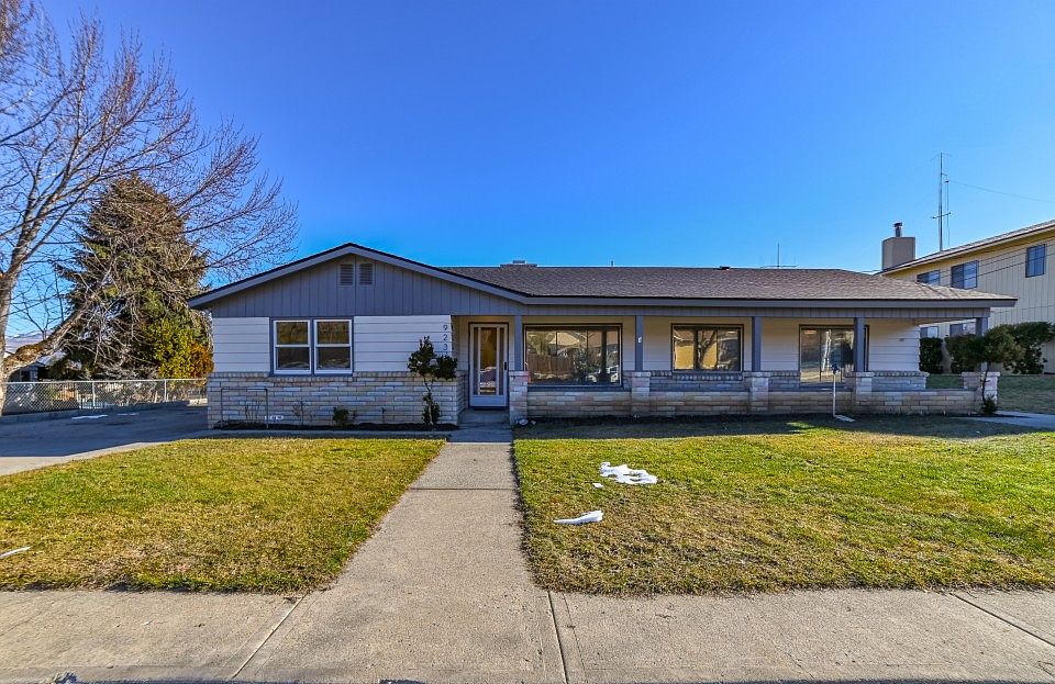 Over an acre of, rarely available - fully fenced, level ground. Mid-Century modern style home with views of the foothills. Also enjoy the new concrete back patio, while looking out over your 10 fruit trees in the back yard. Recent updates throughout, including a newer roof, heat pump, and hot water heater. Large shop on the property and other detached sheds/chicken coop.
