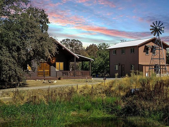 Work, live and recreate all on this one amazing property in Angels Camp! Everything you've ever dreamed of on one beautiful property...incredible 4 bdrm, 3 bth 2197 sq ft remodeled Log Cabin home, two ponds (one fully stocked with fish), a drive through shop with car lift, Barn with rooms upstairs and down and two big roll up doors, Additional garage with room for another living unit upstairs, two wells on the property. 6.2 useable acres, fenced and cross fenced perfect for raising livestock and horses. Zoned A1-Ag Mixed Use Zoning,2 meters on property, 1 commercial (barn/offices/shop),1 residential (home). RV Space and full hookups and semi accessible. Enjoy the fruit trees and vines: plum, pear, cherry, pluot, fig, grape, peach, apple, olive. Log home is stunning with newly remodeled kitchen and bathrooms complete with granite counters, SS appliances, cathedral ceiling with master bedroom loft upstairs. A MUST SEE PROPERTY!! Info deemed reliable but should be verified.