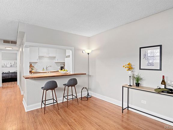 Step into this remodeled garden-level unit nestled in the quiet community of Hampden Court Condos. You're greeted by a spacious living room bathed in natural light. Fresh paint throughout enhances the bright and inviting atmosphere. The kitchen has been thoughtfully opened up to maximize space and features stylish butcher block countertops & a new farmhouse sink. The countertop has been lowered to double as a seating area, perfect for casual meals or morning coffee. The bedroom boasts 2 large closets, ensuring ample storage space, and is large enough to accommodate a king sized bed. The functional bathroom has been updated with a new vanity. For added convenience, a shared washer/dryer is located just outside the unit, making laundry day a breeze. This condo comes with a reserved parking spot within the secured, gated community. Additional upgrades include new doors, frames & hardware. The prime location is a standout feature, being just a quick walk away from grocery shopping, a variety of dining options, and the serene Hampden Heights Park. This unit is a great option for owner occupants or investors alike.