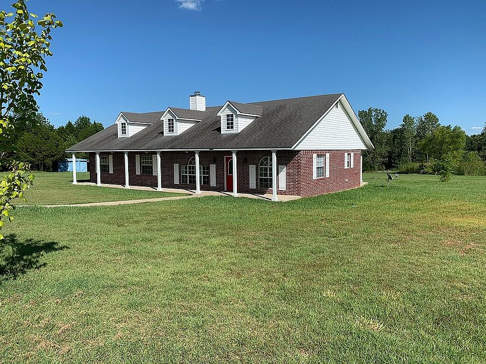 4BR/3B - Brick home with vinyl siding, vaulted ceilings, wood burning fireplace, new carpet located on ~7 acres with a small shop building, pond, large garden area with several fruit trees. Located just West of Ravia ~5 minutes outside of Tishomingo, OK.