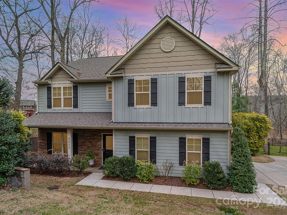 Welcome to 9230 Windygap Road. This 2018 build offers lakefront living in the heart of the city. The home features an open concept modern kitchen with granite countertops and breakfast area. 9' ceilings and engineered hardwoods on the main floor. Huge primary bedroom with large ensuite leading to an oversized walk in closet. Three additional large bedrooms each have their own walk in closet. Side load garage. Freshly painted, clean, and move in ready. Large back deck overlooks the lake and the fenced in back yard. Enjoy gorgeous year round lake views. There are dock restrictions in place, but you can easily launch a canoe or jet ski and enjoy all that Lake Wylie has to offer. Browns Cove is conveniently located steps from I-485, the airport, shopping and amenities. Easy commute to uptown. This hidden gem truly has it all and no HOA. Prepare to be wowed and make this your next domicile today!