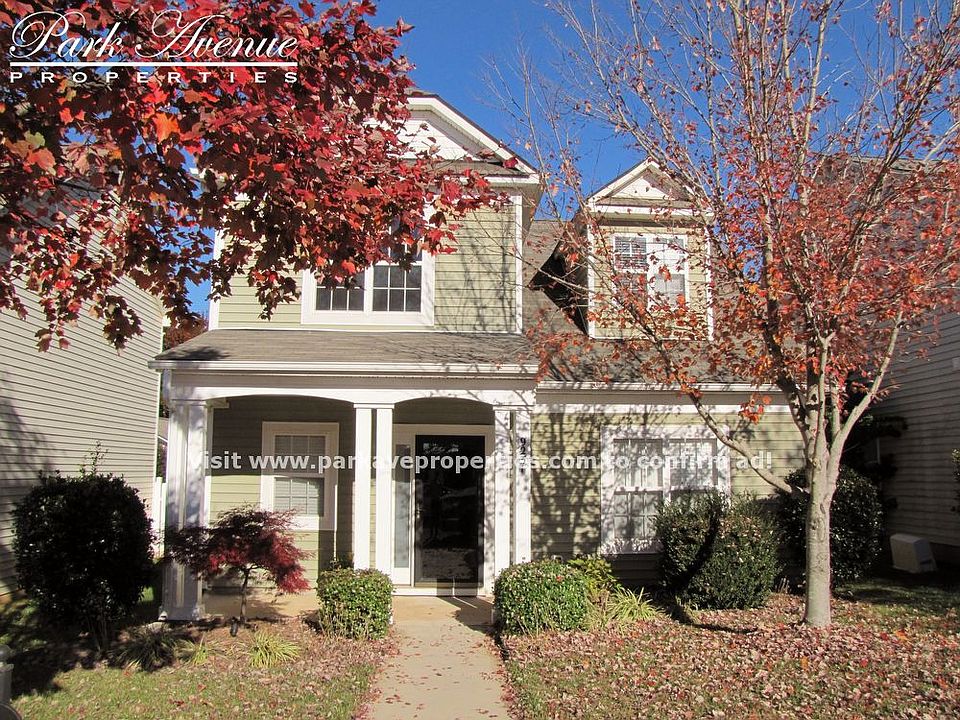 Located on a tree-lined street in Heritage Green, this charming home features hardwood and tile floors, a formal dining room, and a first-floor master suite! The kitchen boasts granite counter tops, modern pendant lighting, and a glass backsplash in a mini subway tile design. French doors open to the privacy-fenced back yard with a patio, which leads to the detached 1-car garage. Upstairs, two of the bedrooms have built-in shelving, and one has a built-in desk. The bonus/4th bedroom with a custom walk-in closet is also ideal for use as an office, exercise space or rec room. Community amenities include a pool and playground. Minutes to I-77!