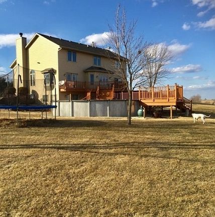 Custom built home on 7 acres with no one behind you or in front of you. This house has 4 bedrooms plus a loft which could easily be converted to a fifth bedroom. Main floor has master bedroom with French doors leading to deck where hot tub is. Main floor laundry with laundry shoot from second floor. Also central vac. Entertain in the open concept 20 foot great room with custom built fireplace with a Quadrafire Castile Pellet burner, so no work of chopping wood. Kitchen has newer appliances. Almost all lights are replaced with LED bulbs for extra savings on electric bill which last month was $67. Basement finished with walkout with plenty of storage. Could have another bedroom and bathroom in basement if you wanted too. Newly built storage shelves in basement. Large deck that wraps the whole back of house with newly built second deck of cedar built around new pool that attaches to deck to house. Also hand built craftsman shed next to pool with electric. House has 3 stall garage with heater. Two buildings one was for horses but now cold storage and the other is cemented with heater and a wash bay stall. Can store up to 7 vehicles if need too and both have electricity. Yard just sprayed professionally in fall so reduced weedr. Professional LandscapIng all around house.