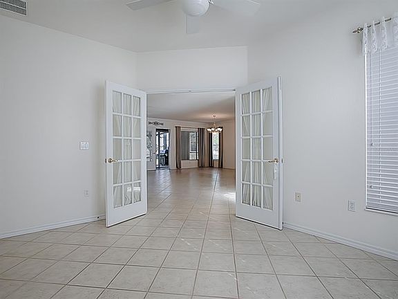 Great home at a Great Price. 2 Bedroom with a den, Santa Rosa model, with a golf cart garage, enclosed lanai under heat and air, a birdcage with a roof . No carpeting in this home. Ceramic tile everywhere, except the master Bedroom which has engineered hardwood planking. The kitchen is perfect for those who enjoy cooking with lots of cabinets, an island, plus a large dinette area. You will love the gas fireplace in the great room which also has crown molding. The garage and golf cart garage are extended, and it has drop down stairs that open with a remote. The lanai has glass sliders opening to the birdcage. The list goes on and on so, see it now before it is gone. New A/C 2010. New Roof 02/2022.