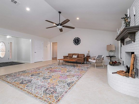 Welcome to this well-maintained, updated, split 4 bedroom, 2 bath home located in the Bell Ridge Forest neighborhood. As you step inside, you will immediately notice the spacious great room with abundant natural light, ceiling fan, and brick faced fireplace with a raised hearth. The updated eat-in kitchen has stainless steel appliances, white shaker-style cabinets, and a large pantry. The dining room has a beautiful custom designed hardwood floor. The master suite provides a peaceful retreat, with a large naturally lit bedroom an updated bathroom with a large walk-in shower, double vanity, and a generous walk-in closet. The split floor design allows for privacy and wide hallways for the 3 additional bedrooms complete with large closets and ceiling fans; and a bathroom off the Living Room. The house has large doorways, hallways and several features to assist in safe mobility in the bathrooms. The entire house has been recently painted, smooth finished ceilings and walls. There is also a spacious sunroom overlooking the large completely fenced-in private backyard. Great place for children to play, pets or hosting cookouts/parties with family and friends. In addition to the 2-car garage, there is a large (20" x 35") RV/boat/shop garage for all your toys. The irrigation system keeps the lawn looking green and lush year-round. New Roof - December 2021, New Geothermal Heat/Cooling System - August 2022, New GRUNDFOS Loop Pump - March 2023, New 50 Gallon Water Heater - August 2022, HAM's PEST CONTROL serviced on March 2023 ~ Hurricane Shutters ~ Don't miss the opportunity to make this your home!