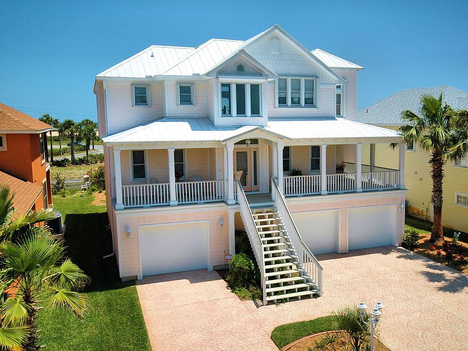 PANORAMIC OCEANVIEW HOME Gorgeous 3 story oceanview 3560SF home nestled between the ocean & intracoastal waterway. Set amidst a community of Key West style architecture in Summer Island with gated entry, clubhouse, tennis, pool, boat ramp & fishing dock on the Intracoastal waterway, & a spectacular beach just across the street. The 1st level of this home houses a 5 car garage, family room with wet bar, & powder room. The 2nd level has a family room, 2nd master suite & bath & 2 large guest bedrooms with another full bath, large laundry room, a 46ft ocean deck & 46ft sunset view deck. On the top level (3rd floor) you have a great room with vaulted ceilings, kitchen w/solid surface counters, formal dining, fireplace, surround sound, posh master suite & large oceanview deck with 180 degree views of the ocean & Matanzas River, outstanding waterviews! Upgrades in this home include, concrete construction, Hardyboard Concrete siding, central vac, upscale appliances, ceramic tiled living areas, upgraded carpeting in bedrooms, ELEVATOR, purified water system, water softener, on demand hot water with recirculating system, alarm system, storm protection, Rhino 25yr impermeable paint finish on the exterior. The outdoor spaces are beautifully landscaped with flowering plants meandering along a path to the adjacent pond which attracts a host of tropical birds. This home epitomises what gracious Florida seaside living is all about! Perfect for a family or empty nester's who love to entertain. $895,000