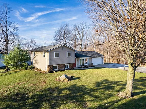 A rare find in Roanoke with 4.4 acres and an oversized 68x48 heated pole barn. The home has 1547 sq ft, 4 bedrooms, 2 full bathrooms, updated eat in kitchen, family room with decorative fireplace, living room. 2 car garage, fantastic patio boasting in size of 32x18. Plenty of space to entertain. The barn has boiler heated floors, 14ft ceiling, 2ft concrete wall all the around, floor drains, two 12ft overhead doors, spray foamed & rolled insulation, water hydrant. This barn was done right. Perfect for a home operated business or one with big hobbies. Schedule your showing to see how it would work for you. All appliances included but not warranted.