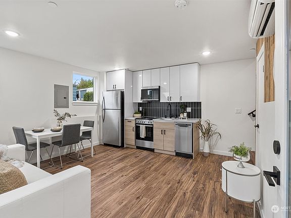 Fauntleroy meets Westwood Village with contemporary minimalistic, affordable luxury living? Yes please! This thoughtful modern home in the final process of becoming Green Build Certified features 2 bedrooms, 1.75 bathrooms, striking raw wood accent walls, LVP flooring throughout, quartz kitchen countertops, beautifully detailed custom bathroom and kitchen tile work, windows galore, mini splits for heating and cooling and a deck off of the primary bedroom with territorial views. Perfectly located just steps to beautiful West Seattle parks, shopping, dining and public transit, this home is everything you need right where you need it at a price you can afford!