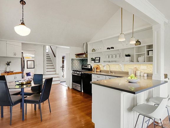 HUGE PRICE IMPROVEMENT and a true Urban Oasis! — beautifully remodeled Greenwood home sited high above the street for great light and privacy. Centerpiece of the home is the large Chef's kitchen featuring vaulted ceilings — open to the dining and living rooms, and to the wonderful secret garden patio out back. Wonderful, spacious primary suite w/luxurious spa bath and private "treehouse" room through the French doors. Charming and useful spaces galore — Media room, basement craft room/office, shop space in the 2-car garage w/ alley access. Hurry! This type of property doesn’t become available often!
