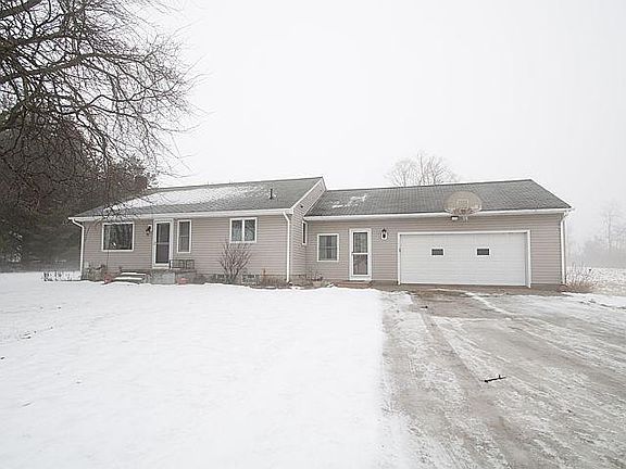 Enjoy small town living in this country ranch on 1 acre in Bridgewater. Newer vinyl siding, insulation and windows. Kitchen has built in oven and stove top. One bedroom used as a study with Pergo flooring. Breezeway was remodeled into dining room but could have multi purposes. High efficency furnace. Nice built-ins throughout the house. Stairs to unfinished attic could have many possibilities when finished. 2-1/2 car attached garage and a great entertainment sized yard with 20x24 pole barn for all of your toys!