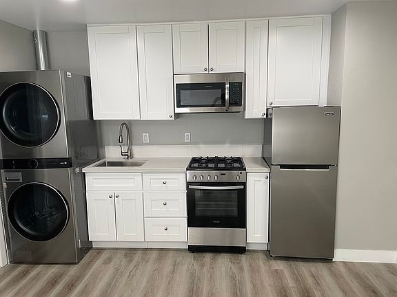 Quiet, clean, new studio. Surrounded by single family homes. This is a permitted garage conversion complete with private parking, laundry, full kitchen, and private entrance. One shared wall with main house. Professional soundproofing. Stainless steel appliances, A/C, new flooring, large walk in closet. The space is efficiently used and meticulously maintained. Tenants in the main house are quiet and respectful.
