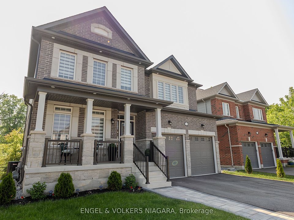 Nestled in the tranquil embrace of Niagara Falls, 9234 White Oak emerges as the epitome of family living. This impressive four-bedroom, three-and-a-half-bathroom house boasts an array of features designed to cater to the contemporary family's needs. Upon arrival, you are greeted by a majestic stone-accented exterior and an inviting covered porch, pots lights setting the tone for the warmth within. Step inside to discover a home bathed in natural light, streaming through large, bright windows, enhancing the spacious feel throughout.The heart of the home is the expansive kitchen, complete with a generous island, perfect for casual dining and family gatherings. A convenient servery leads to an elegant dining room, ensuring entertainment is seamless and sophisticated. Set against a backdrop of serene green space, this abode affords privacy and a connection to nature. The walk-out basement offers further potential for living or recreational space. Upstairs, functionality meets luxury with a second-floor laundry and two master suites; the principal master features an ensuite and dual closets, while the junior master boasts an ensuite and a walk-in closet. Both designed for comfort and ease. Solid oak stairs with stylish metal pickets ascend to a realm of rest, while the modern no-carpeting approach speaks to a preference for clean, allergen-reduced living spaces. With parking for six vehicles, this house is as practical as it is charming.