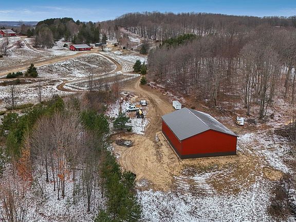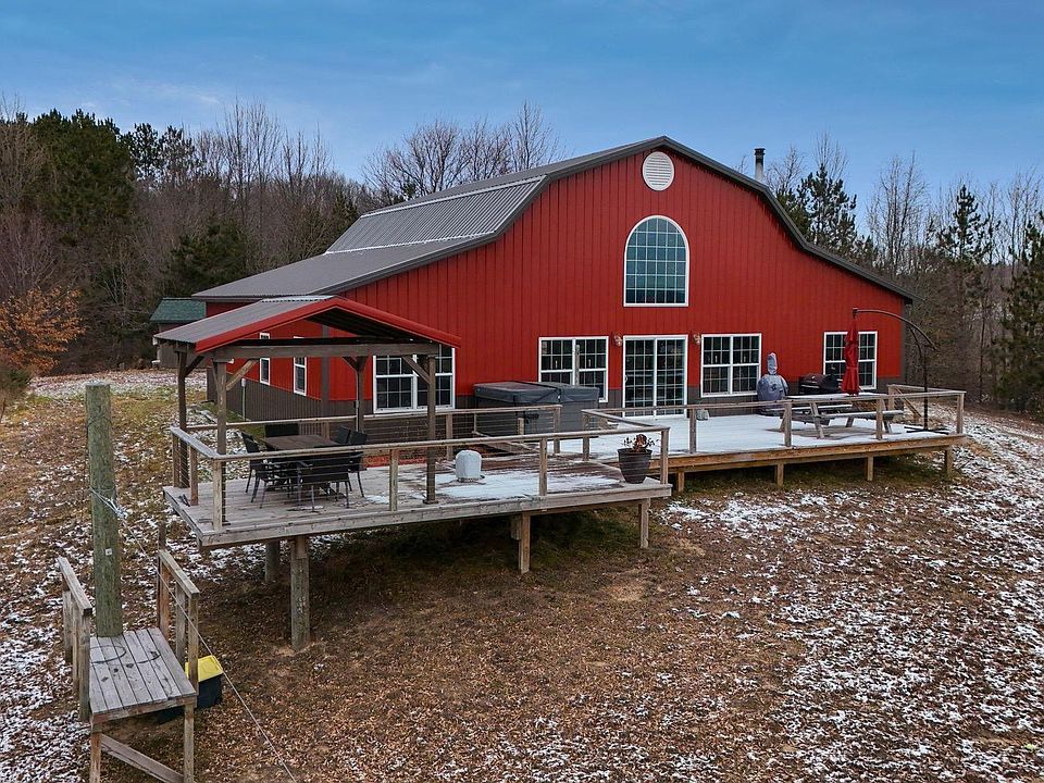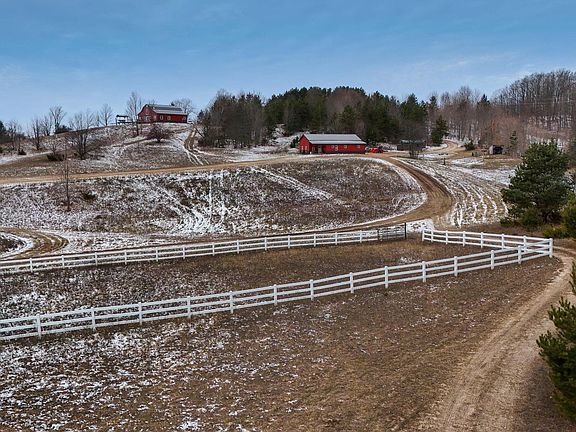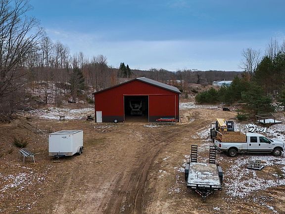 This is a rare opportunity to own a family compound on thirty-eight acres located near East Jordan. The property has five bedrooms, five bathrooms, and three living areas. It was newly developed and built in 2019. The house has an expansive southern exposure to the Jordan Valley, with two decks off the front designed to capture the views. Additionally, it has a 1000-foot western border with views of the driving range and the neighboring golf course. The main house has a two-bedroom, two-bathroom, and a 2,160-square-foot all-one-level footprint. There is also a large, 30 x 40 open living family area. A 44’ x 48’ pole barn has 12-foot ceilings and a 1050 square-foot two-bedroom, two-bath apartment. One bedroom has three loft bunks with private closets an ensuite bathroom, and a 12 x 12 covered porch with views all its own. Moreover, there is a 224 square foot one-bedroom, one-bath “tiny house” on the property. The 44’ x 48’Pole Barn has a cement floor, horse stable, and lofted storage area with power and water to the barn. A 50 x 64 pole barn with 16-foothigh ceilings and doors offers ample storage space. The property has six splits available for expanded opportunities. Seller will sell the home furnished. It is located 2.5 miles from the Boat Launch and Beach in East Jordan, 3 miles from a DNR Access and boat launch on Six Mile Lake, and 11 miles from the Graves Crossing Jordan Valley Entrance and Chestonia Jordan River Access. Also 15 Miles to Boyne Mountain and 16 miles to downtown Charlevoix. The property offers many opportunities for the next owner. Contact your agent to schedule a tour. The property also has Fiberoptic Internet installed.