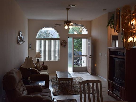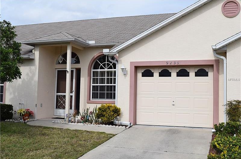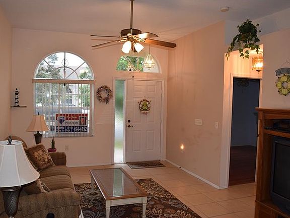 This very well maintained villa is offered by the original owner. Enter through the front door into the large Living Room with High Ceilings and plenty of Natural Lighting through the beautiful arched windows. The adjoining Dining Room also has high ceilings and a sliding glass door that leads to the air conditioned Florida Room. The large eat in kitchen is well lighted and features a bay window behind the breakfast table. The Master Bedroom features a walk-in closet and a Master Bath with a large walk-in shower. The 2nd bedroom and guest bath are to left of the living room. There is a single car garage off the Kitchen. This beautiful home features Ceramic Tile in the living areas, kitchen and baths, Laminate in the bedrooms. The Air Conditioner was replaced in 2012.