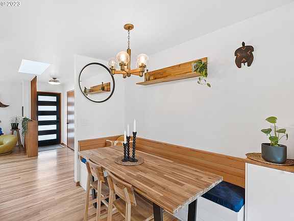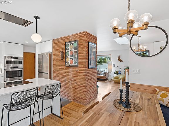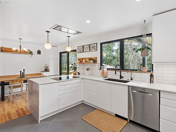 Come enjoy the good life in tax-advantaged unincorporated Washington County in a rare turnkey, fully remodeled mid-century daylight basement in desirable West Haven-Sylvan. Conveniently located in a quiet enclave, minutes from Portland, Intel, and Nike. Beautifully restored home with modern touches and forever-home upgrades in a wonderful, safe, quiet, and friendly neighborhood with exceptional schools. Remodeled kitchen with brand new Bosch appliances, heated flooring, flush-mount exhaust, European style thin-quartz countertops, workstation sink, eat-in bar, and built-in banquet. Relax in a natural light-filled living and dining room with refinished pecan flooring, new windows, and exterior doors. All of the bathrooms have been remodeled with the ensuite bath featuring heated flooring, a vaulted skylight with hemlock paneling, dual-head rainfall shower with thermostatic temperature control, Toto toilet with integrated washlet, and sliding pocket door. Enjoy the beautifully landscaped and terraced backyard on the expansive covered deck, featuring blue stain pine and two skylights for multi-season usage. The deck was constructed in 2022 with weatherproof, low-maintenance Trex decking. Perfect for entertaining and enjoying the carefully selected, well-established plantings. Unwind in a handmade 4-person barrel sauna, perfect for cooler weather. Daylight basement features independent living quarters with a separate entrance, updated kitchenette, remodeled bathroom with rain shower and dedicated laundry. Ideal set up for In-law unit or attracting high-quality longer-term tenants. Additional upgrades include: Freshly painted exterior with swedish black pine-tar on Alaskan Yellow cedar, new roof and gutters, upgraded electrical with 400 amp service, electric car/RV charging port in garage, updated plumbing, new garage doors, efficient gas furnace & heat pump with AC/compressor, heat pump water heater.