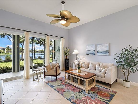 CDD PAID IN FULL! Step into this charming, meticulously maintained 3-bedroom, 3-bath condo, and be instantly captivated by panoramic WATER views. Thoughtfully designed for comfort and peace of mind, this residence boasts Storm Smart roll-down shutters on the lanai, a NEWER ROOF and IMPACT windows and sliders throughout. The open-concept layout features neutral tile floors, with CoreTec (luxury vinyl) in the bedrooms adding warmth and durability. Volume ceilings enhance the spacious feel, allowing for an abundance of natural light. The primary suite is a true retreat, with serene Falkland Blue walls, a frameless glass, SPA-LIKE shower, and a separate soaking tub. Dual sinks offer added convenience, making this space as functional as it is tranquil. For culinary enthusiasts, the kitchen is a dream. With GAS COOKING, custom white cabinetry, lovely granite counters, a large island perfect for meal prep, and a generous pantry, you'll have PLENTY of space to create and entertain. The kitchen is finished in a soothing Violet Mist, complementing the elegant and inviting custom draperies in the home. Best of all, the kitchen, great room, and many other rooms in the home overlook the WATER, offering peaceful views to enhance your everyday living. The two additional guest bedrooms provide privacy and comfort, making this home ideal for hosting family and friends. The courtyard entry, complete with a cozy seating area, welcomes you into this inviting space, while the expansive lanai provides plenty of room for lounging and dining al fresco—ALWAYS with serene water views in the background. Other recent updates include lanai screen, tankless hot water heater and a new garage door opener-offer peace of mind and ease of ownership. The Laguna community also has its own pool, perfect for a refreshing dip just steps from your door. Fiddler’s Creek is a prestigious resort-style community where luxury and nature exist in perfect harmony. Featuring world-class amenities such as the Club & Spa, casual and fine dining, championship golf courses, and beautifully landscaped grounds, residents enjoy a lifestyle that blends relaxation with recreation. Optional memberships for beach, boating, and marina access provide even more ways to enjoy the coastal lifestyle. Minutes from Marco Island AND downtown Naples, Fiddler’s Creek offers an unparalleled living experience.