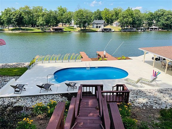 When you enter this beautiful Lake property, it's hard to keep up with the hustle and bustle of work and modern life. Facing the lake, with an incredible view, open concept kitchen, living room, dining room, with cozy rooms, a large wrap around deck facing the lake, an inground swimming pool at the lakes edge, boat house, boat slip and everything you need to have fun with the family receive friends and still live with a quality of life close to nature. This .95 acre lot could support a new large home with a walkout basement on the Northwest part of this spacious property. A storage shed east of house stores a golf cart, pool, and lake equipment. Did I mention the 170' of Sea Wall around this property? It may be a vacation home, but who wouldn't love to live there? One of the best views of Lake Sara is waiting for you , call now and bring the family to take a look .