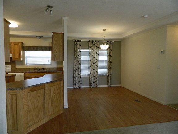 Nicely landscaped country property with lots of amenities! 2011 Solitaire with beautiful kitchen, breakfast bar & center island. Formal dining area plus breakfast nook. Large master BR & bath, with garden tub & skylight. Large workshop with 2 garage doors & separate storage area. Metal domed double carport plus plenty of extra parking in front. City water & water well. Great property on .818 lot!