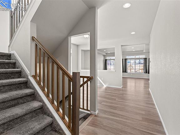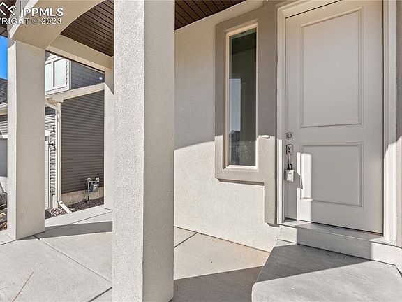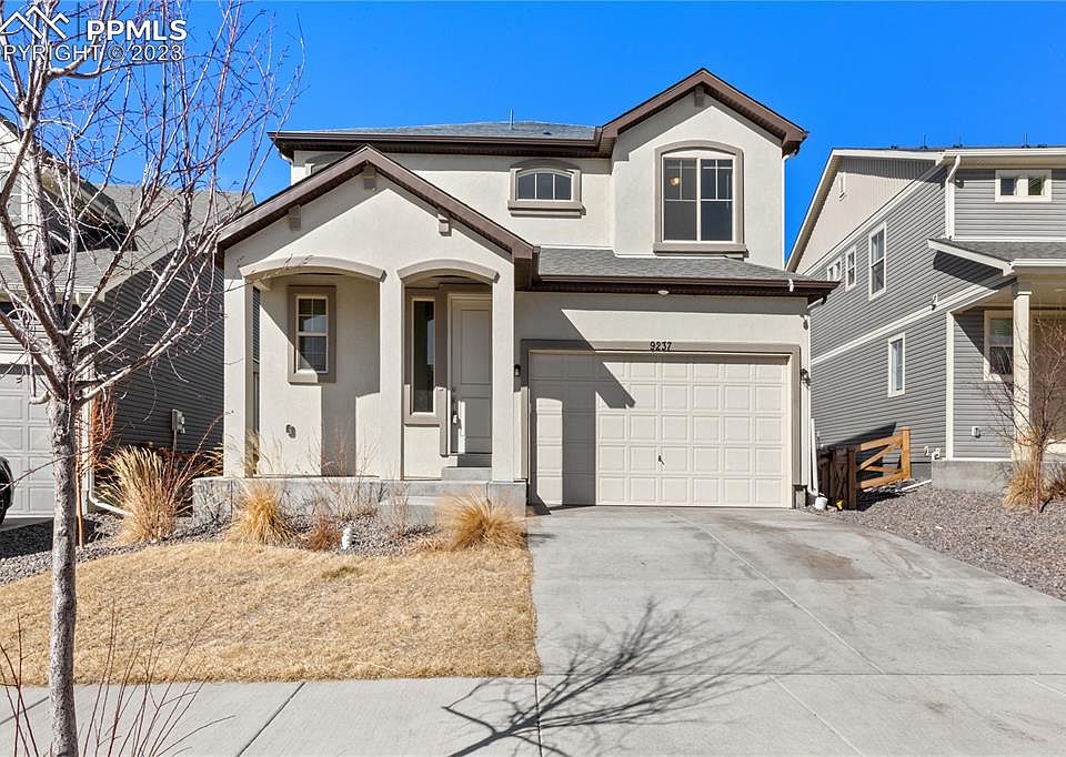 Why wait... this home is ready to be moved into! 2 Story, 4 bedroom, 3.5 bathrooms, 2 car garage with stucco front and great curb appeal. Covered front porch to sit and chit chat with the neighbors. Feel at home as you open the front door and see the easy maintenance of the luxury vinyl flooring throughout the main level. Lots of natural light that comes through. Separate dining area with the feel of an open floorpan, great for entertaining. Large windows in the Living Area. Spacious kitchen including stainless steel appliances. Enjoy the granite countertops and the large kitchen island. Upstairs more space, a loft, plus 2 bedrooms and laundry located conveniently near the living areas. Primary room has an adjoining bath with walk in shower and walk in closet. Double sinks and granite countertops. Basement is finished with a 2nd living space and surround sound pre-wire ready for that theater room. Full bath and bedroom ready for guest. Unfinished space for storage. Walking out onto the backyard, covered back patio and landscaped. Ready for the summer! Located in the Banning Lewis Community.