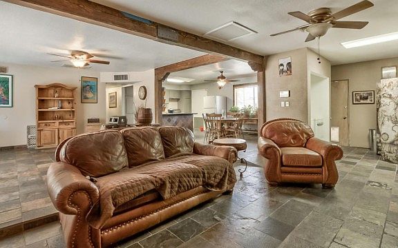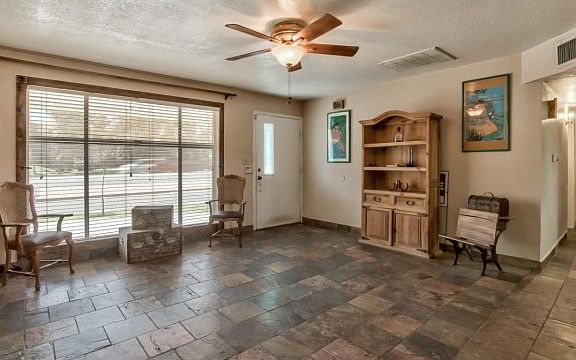 This property is now ready to show anytime. This is a 2 bedroom, 2 bathroom open concept charmer! Originally a 3 bedroom home, two bedrooms were combined to form a large master suite. Could easily be converted back into a 3 bedroom! Roof and AC replaced in 2010. Slate flooring throughout most of the home. Wood vinyl plank was added to the master bedroom in 2016. This home is being sold ''As Is''. Pool needs work and there is a plumbing stoppage in the kitchen sink and master bathroom shower.