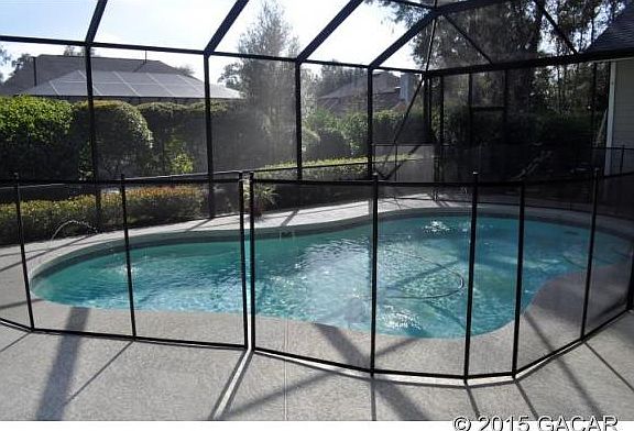 Fabulous Preston Wood pool home on .41 acre lot overlooking green space. This pristine light and bright home boasts architectural columns at front entry & dining room, crown molding, brand new hand scraped hardwood floors in dining room and great room, neutral colors throughout. 42 inch wood cabinets in kitchen, breakfast bar and breakfast nook. Fireplace in great room. Huge lanai and beautiful pool area with full privacy landscaping. 2/2 split plan, 4th bedroom/study w/third full bath out to pool area. Walk to Haile Publix Market Square. Enjoy life in Gainesville's premier neighborhood zoned for A rated schools: Chiles Elementary, Kanapaha Middle School and Buchholz High School. Call for your tour today!