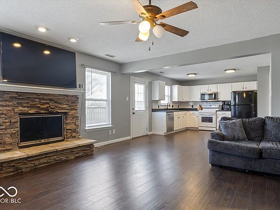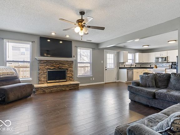 Your new home awaits in this beautifully updated two-level Camby home! Inside you will find new flooring throughout, a freshened kitchen with stylish backsplash, a large mud room/pantry, and a main level guest bathroom. Enjoy the wood-burning fireplace on these cold winter nights and retreat upstairs to the large primary suite with a walk-in closet and garden soaking tub. The upstairs laundry room adds convenience to your daily routine. Outside you will enjoy privacy in the newly fenced backyard, and entertaining will be a breeze with the spacious deck and fire pit. The updates don't stop there! The 2 car attached garage offers a newly epoxy-coated floor, built-in work bench, and tote storage racks. This home also offers a prime location near shopping, restaurants, and interstates. Schedule a private tour with your favorite agent today!