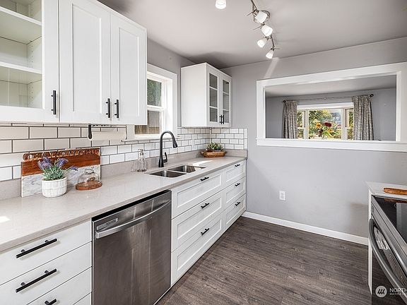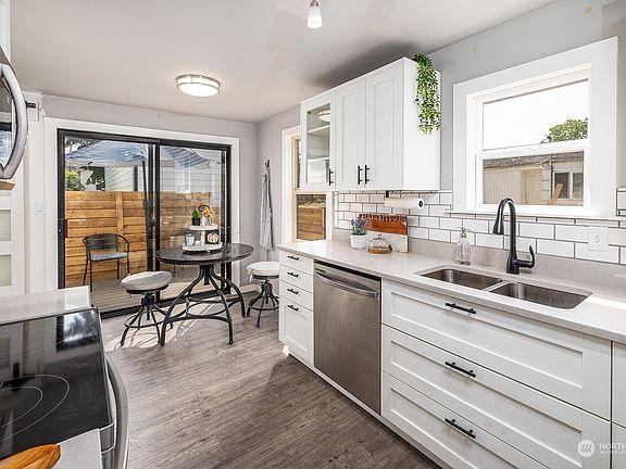 Check out this FULLY updated, super charming bungalow with no maintenance fully fenced front yard, private back deck and convenient and fun Greenwood location!  You will impressed by the updated, modern kitchen including new kitchen cabinets, countertop & appliances, sliding glass door to deck and HUGE storage/laundry area!  The home has fresh interior paint, new flooring; copper plumbing; updated electrical; newer water heater and roof. Small, but convenient storage in basement/crawl holds your extras conveniently out of the way. Turnkey ready, just move in and enjoy living in this quiet city neighborhood near to North Seattle College, Northgate, Green Lake & easy access to 99 and I-5.  Welcome home to this super cute home!