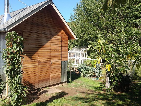 Open floor plan. Bright sunny. Hardwood floor. Bay window with custom built-in book shelf made from reclaimed wood. Potential to expand living space in attic, (2 vinyl windows and fir floor under insulation.)Basement for storageCovered 288 sqft garage permitted and built to code in 2012 with storage loft and alley access. Front and back covered porches. Amazing edible garden. Green house, fire pit. Gourmet stove.Bike score 85