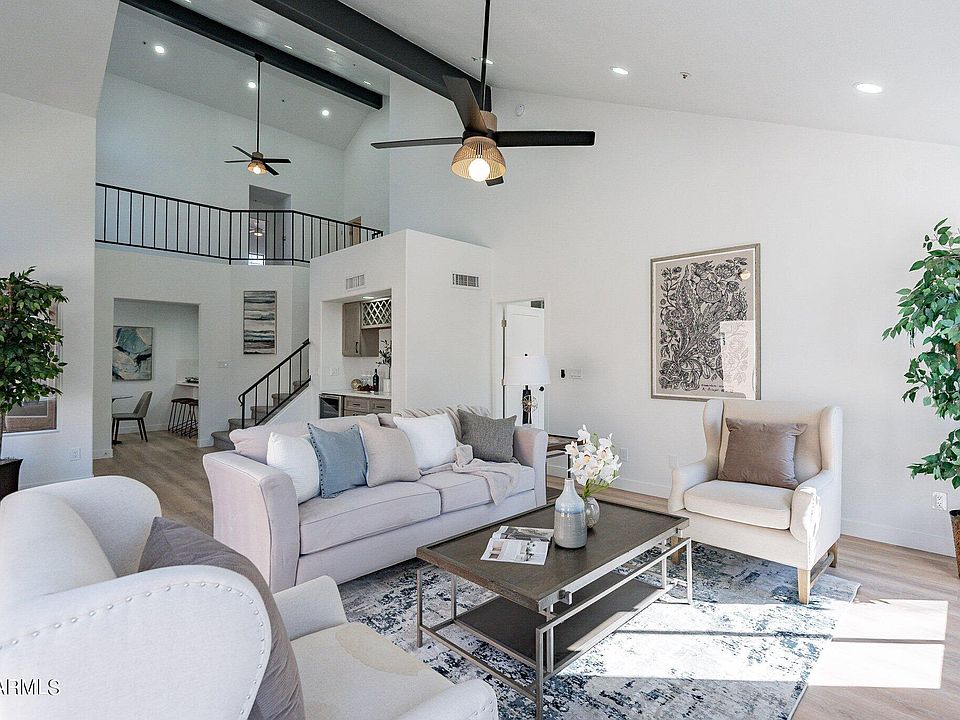 NEW NEW NEW. FULLY REMODELED 3-bed 2.5 bath + Loft in the perfectly located Scottsdale community. An ideal layout with the Primary ensuite bedroom downstairs and 2 bedrooms and full bath upstairs, perfect for kids, visitors or parents. The new kitchen boasts the highest quality workmanship and upgrades with all new soft-close cabinets, quartz countertops and new stainless steel appliances. Just off the kitchen is an oversized walk-in laundry- pantry room combination for your convenience and organization. It's rare to find a downstairs 1/2-bath Powder Room for you and your guests in a property under 2000 sf but this property has it. Speaking of entertaining, the gorgeous new wet bar area in the living room will catch everyone's attention the moment they walk in the front door. Enjoy the wood burning fireplace as you relax in the open and airy living room. The loft, overlooking the living room, with loads of natural light by day and plenty of new can lights by night, is perfect for an office space, a kid's space or your space. All bathrooms display new tile, fixtures, countertops and more. New flooring and carpet throughout. Add a gas BBQ, table and chairs or maybe a patio sofa to complete the efficient outdoor space. Enjoy peace of mind with a brand new water heater, HVAC system and all new copper, PEX water lines. The HOA maintains the front yard for you and roof underlayment was new in 2020. Sophisticated, stylish, new, efficient, natural light, relaxing, cozy, higher quality materials and features, all describe this newly renovated home. A perfect blend of young couples, young families and seasoned residents combine to create a welcoming community.