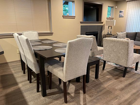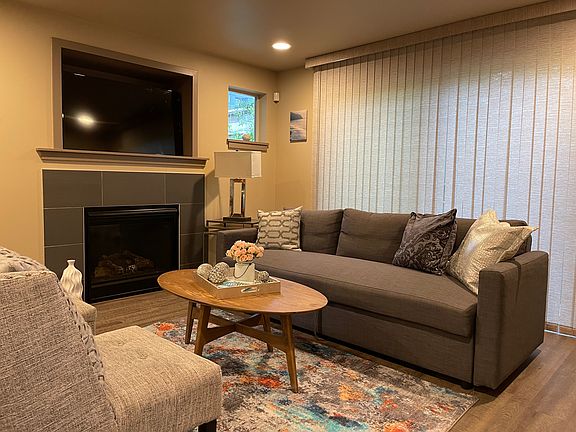This stunning furnished corner-lot townhome is part of an exclusive 8-home community and offers a rare blend of privacy and convenience. Step into your own gated courtyard, complete with mature fruit trees, perfect for relaxing or entertaining. The lower level features a versatile bedroom or office space with a full bathroom. On the main floor, enjoy an open-concept layout that seamlessly connects the kitchen, dining, and living areas, enhanced by a territorial view balcony and a convenient half bath. Upstairs, you'll find two spacious bedrooms, each with its own en-suite bathroom for ultimate comfort. Recently refreshed with new carpet and a fresh coat of paint, this home is move-in ready. Additional highlights include radiant heat, a cozy gas fireplace, and an attached garage with access from 85th Street. Ideally located near the vibrant Greenlake, Greenwood, and Phinney neighborhoods, you'll have easy access to top-notch dining, nightlife, and public transit options, including buses and light rail to downtown.