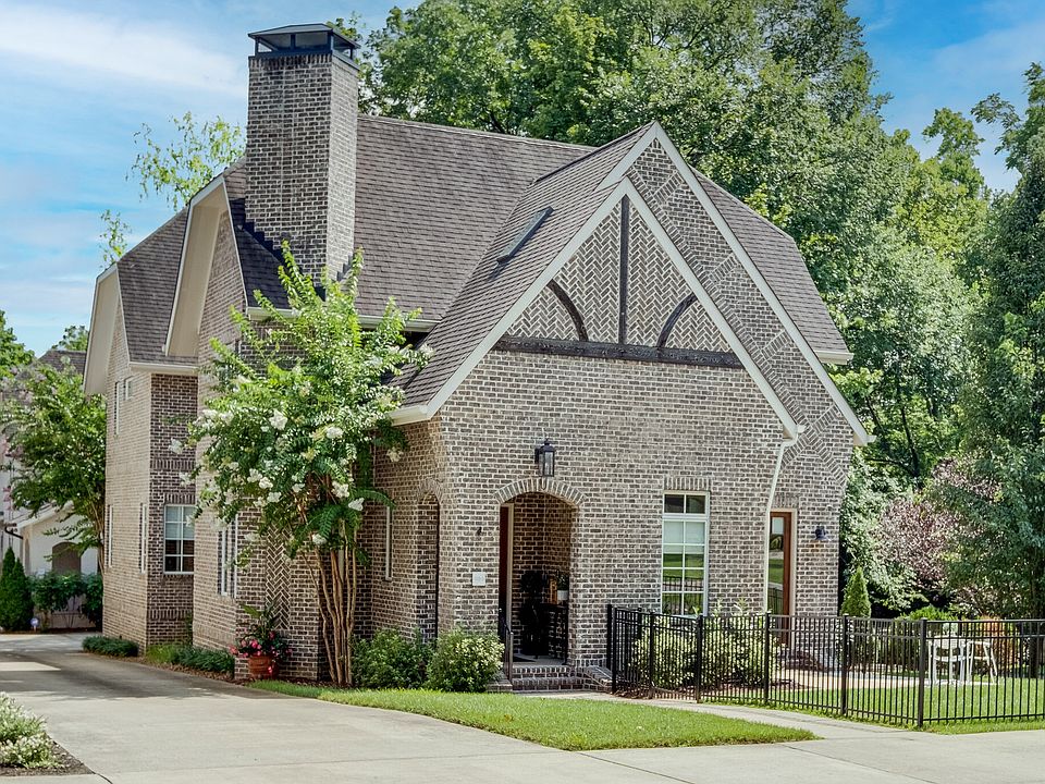 Tudor Home in Twelve South! Close to Eighth South, Belmont, Vandy & Sevier Park with walkability to restaurants, coffee shops & stores. The expansive great room is perfect for entertaining! It features soaring 34-foot ceilings, large windows & a stunning fireplace. Gourmet kitchen is elevated w/white custom cabinetry, stainless steel appliances, large center island, wine bar & coffee counter. Formal office w/built-in desk & shelving. Spacious primary retreat on main w/a luxurious en-suite bathroom featuring a soaking tub & separate shower. Upstairs: Catwalk overlooking Great room leads to a Bonus room, 3 add'l bedrooms & 2nd bonus/flex space/gym. Screened porch & patio in fenced yard. All new landscaping. Only attaches at back of garage. No HOA fee. Quaint Gale Lane in vibrant Nashville!